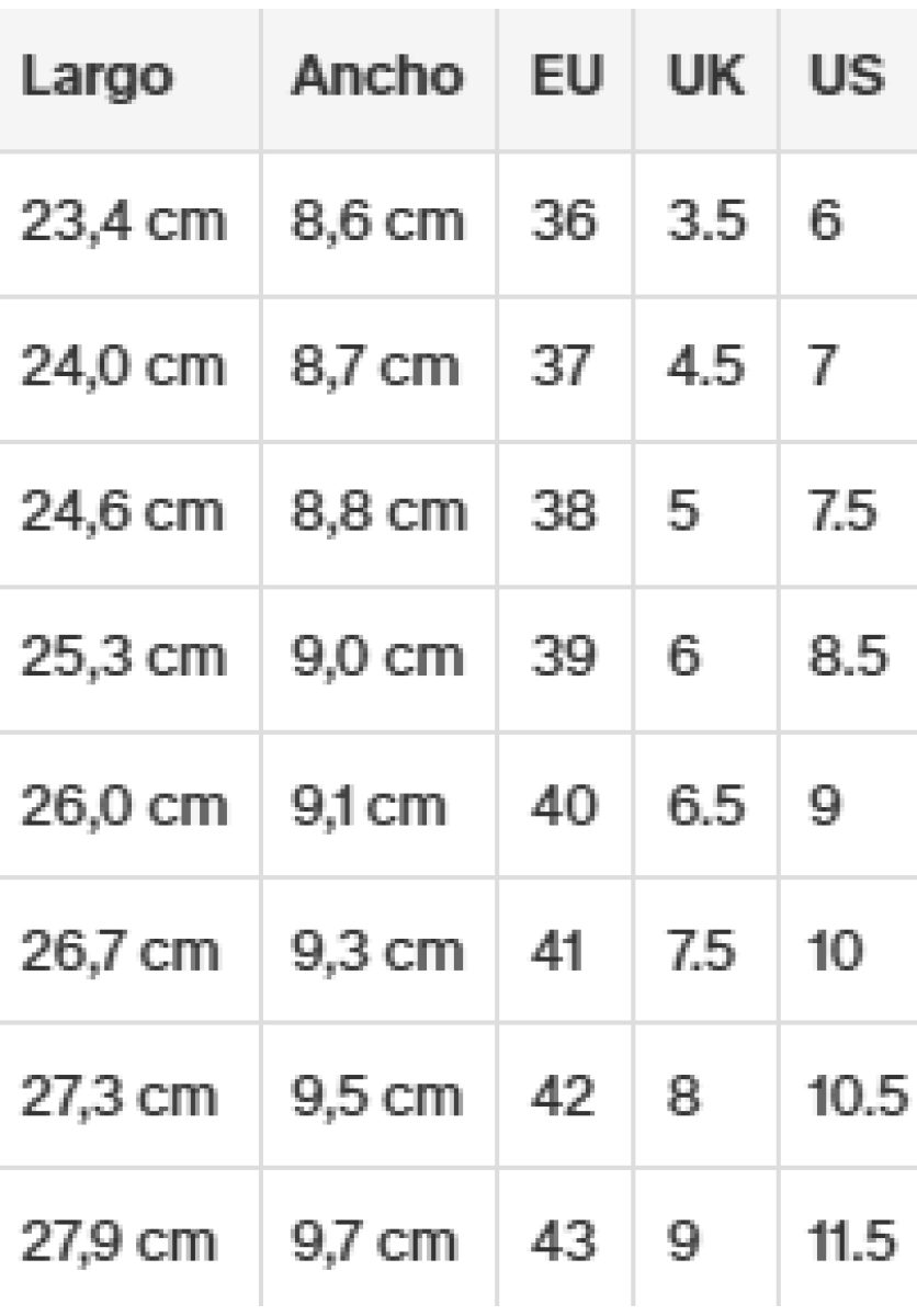 ·Barefoot Fit: puntera ancha para libertad de movimiento. Para pies normales a ligeramente anchos